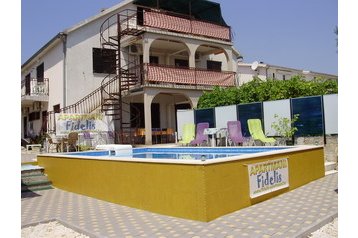 - 4x Apartament: 2x 2-osobowy pokój, pokój dzienny z dostawką, TV-SAT, klimatyzacja, telefon, łazienka z prysznicem i WC, kuchnia (kuchenka elektryczna, lodówka), taras z widokiem na morze.