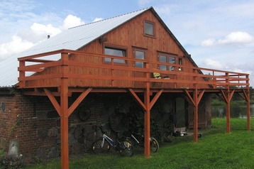 Tenis de masă, acoperiş, gril, súkromné lac s ostrovčekom, loc pentru grătar, loc de joacă pentru copii, ambarcaţiune, biciclete, cu taxă jeep-uri, plutărit cu caiacul. Încălzire centrală. Posibilităţi servirea mesei. Spaţiu parcare lângă unitate. Magazin alimentar 2km. Restaurant 4km. Autobuz 2km. Tren (gara Kościerzyna) 30km.